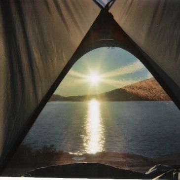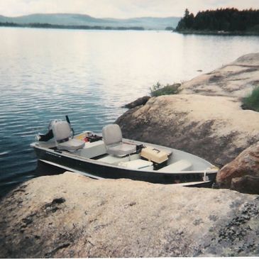 This is the spot I pick to spend the night. A rock, at the top peak looking at the sunset in the middle of a lake in "Maine". We used a L.L. Bean "Bug Tent", and my fishing gear came from L.L. Bean . It doesn't take money to pitch a tent with your family or yourself. It brings new life to your soul.